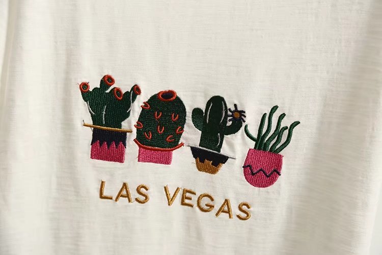 PS9770 2017韓版春裝新款仙人掌刺繡寬松大碼打底衫短袖T恤女上衣